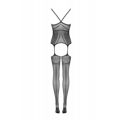 Детали: черный боди-комбинезон с нежным цветочным узором, эластичные ремни - адаптируются к вашим потребностям, специально разработанный узор - идеально подчеркнутая грудь, украшения на животе - подчеркнутая талия, открытая промежность и обнаженные ягодицы - лакомство для настоящей соблазнительницы, украшения на бедрах - великолепный вид гарантирован, вертикальная аппликация на спине - манящая и кокетливая деталь.
