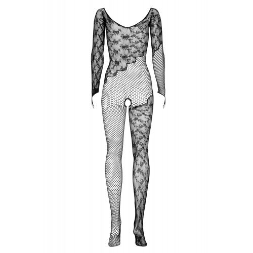 Детали: глубокий, подчеркивающий декольте вырез, длинные рукава с прорезью для пальцев, все декорировано цветочным узором, умело сочетающимся с сеткой, открытая промежность, очень красивый, эластичный материал.