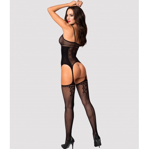 Сексуальный боди-комбинезон с имитацией корсета и чулок S/L