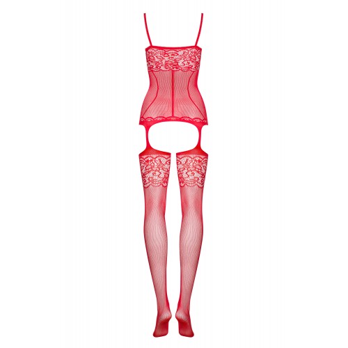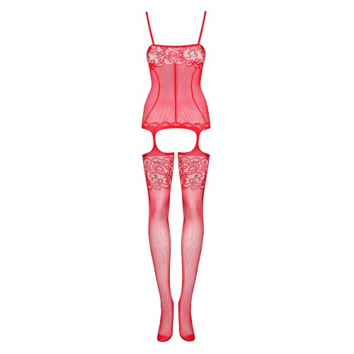 Сексуальный красный боди-комбинезон с нежными узорами S/L