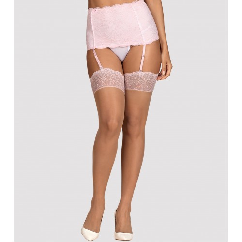 Бежевые чулки с нежно-розовым кружевом Girlly L/XL