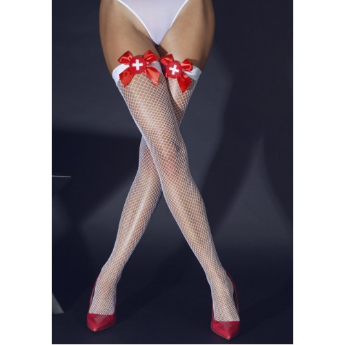 Белые чулки доктор с медицинским крестом на красных бантах чудесно дополнят ансамбль!