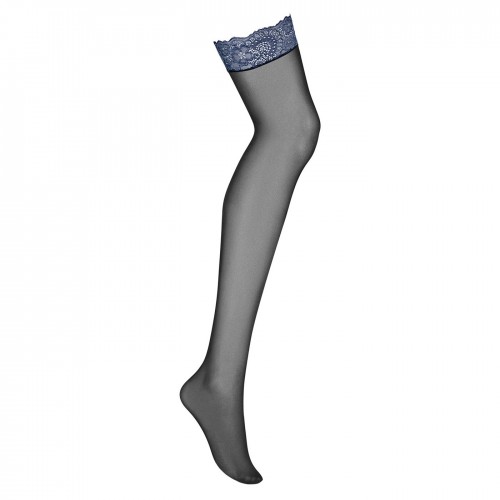 Роскошные чулки Auroria чёрного цвета с изысканной синей отделкой станут отличным завершением Вашего образа, чтобы поразить и взбудоражить своего мужчину. Чулки выполнены из приятной для тела тончайшей эластичной ткани чёрного цвета. По верхнему краю проходят вставки из изумительно красивого кружева с цветочными узорами синего цвета. Чулки соблазнительно обтягивают, визуально стройнят и удлиняют ножки.