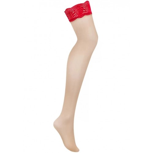 Нюдовые чулки с красной кружевной резинкой Mellania L/XL