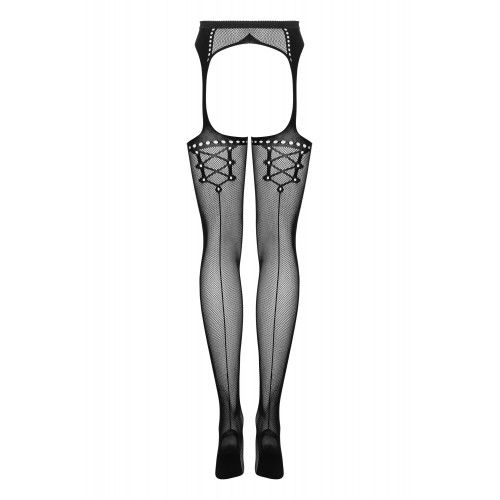 Оригинальные чулки в сеточку с имитацией завязок и поясом S/L