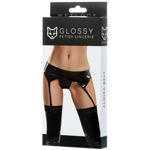 Пояс для чулок и трусики-стринги Glossy Almira из материала Wetlook S