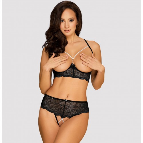 Тонкие регулируемые бретели и многоступенчатая застежка бюстгальтера, открытые чашки, украшенные нежным жемчугом и игривой подвеской, соблазнительное кружево, лишь слегка прикрывающее кожу...