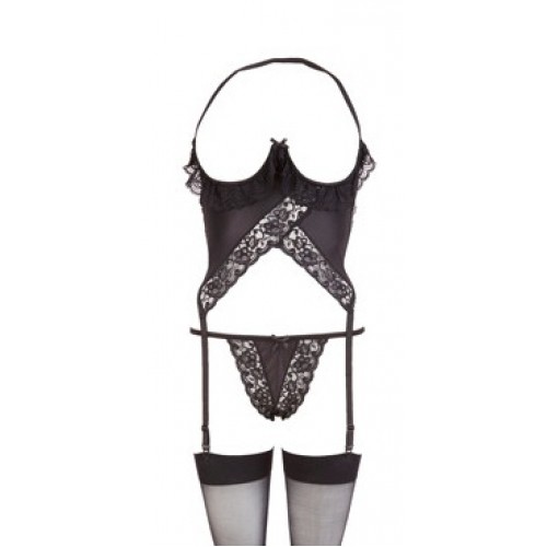 Сексуальная черная грация с открытой грудью из прозрачной вуали поможет приятно удивить партнера ночью!