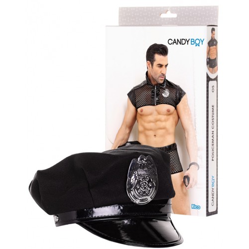Пластиковые молнии без острых краев. Кепка с лаковым козырьком регулируется в обхвате. 2 значка с надписью City Police (англ. «Городская полиция») и пластиковые наручники входят в комплект.