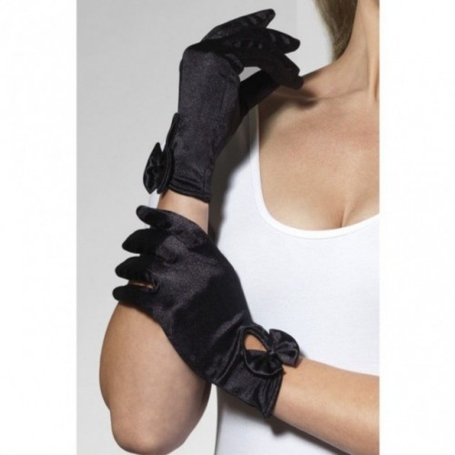 Очень женственные короткие перчатки из атласного материала, черного цвета создадут неповторимый образ страстной обольстительницы!