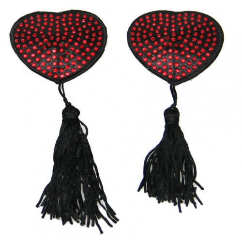 Пэстисы-сердечки со стразами и кисточками