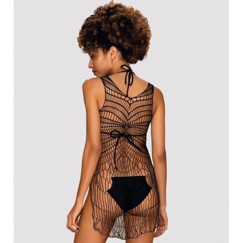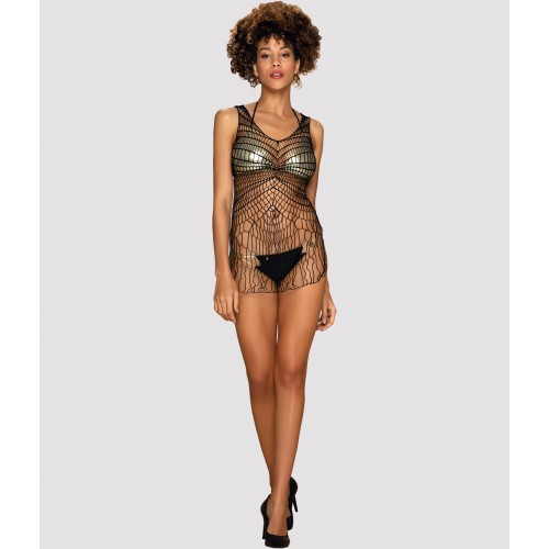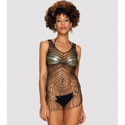 Черное мини-платье в сеточку и разрезами по бокам OS