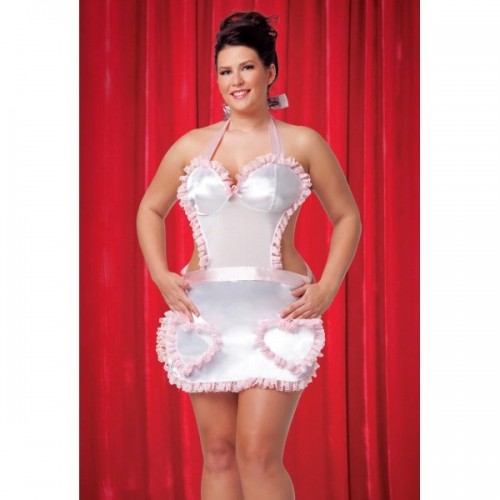 Белый нежный фартучек из атласной ткани с блестящим отливом.