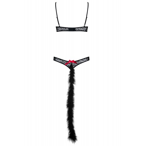 Мягкие чашечки на косточках и регулируемые плечевые ремни сделают Вашу грудь еще аппетитнее, а красные бантики и шнуровка добавят пикантности образу.