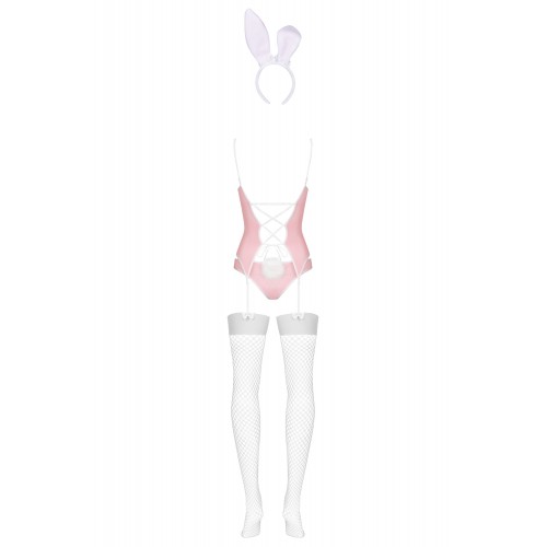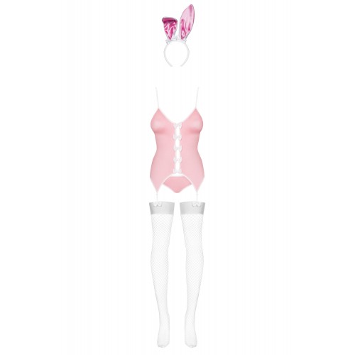 В комплект входят: корсет, трусики, чулки и повязка на голову с ушками.