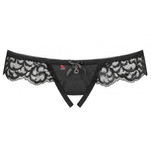 Детали: сексуальные трусики из уникальной слегка блестящей ткани и прекрасного кружева, спереди небольшой бант и изящный кулон с черными камнями, соблазнительные вырезы на попе добавляют пикантности, открытая промежность, суперэластичная ткань Multistretch.