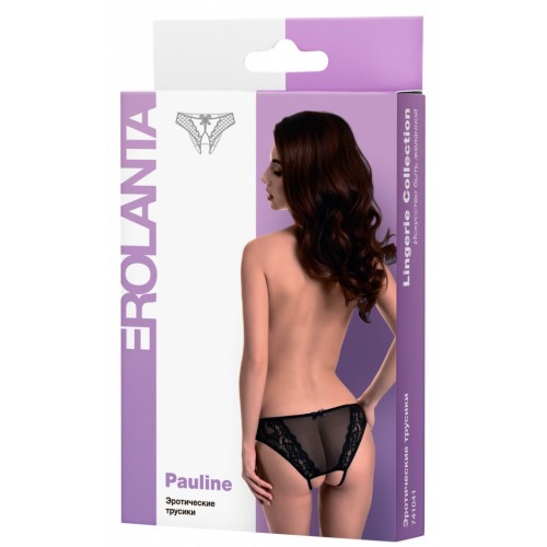 Эротические трусики Erolanta Pauline из стрейч-сетки, эластичные, с декоративным вырезом, с кружевными вставками, с атласным бантиком спереди.