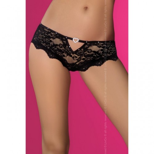 Спереди трусики имеют причудливый вырез и украшены сердечком из страз.