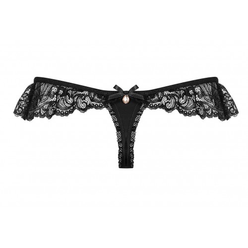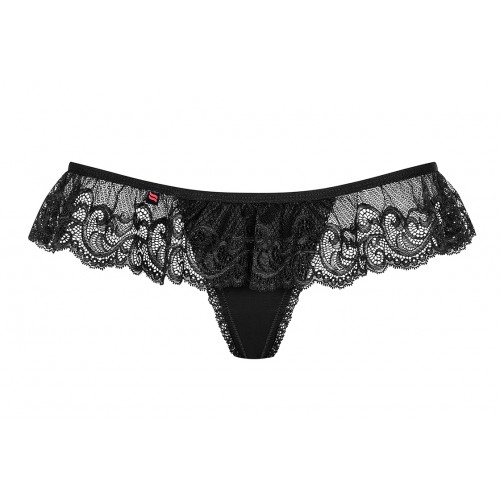 Сексуальные стринги с красивой кружевной оборкой с очаровательным украшением сзади.