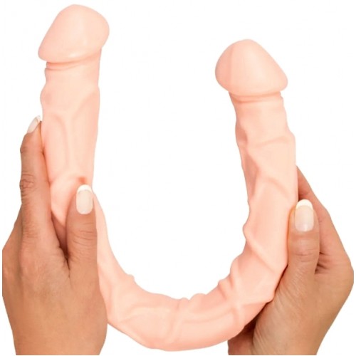 Двухголовый фаллос имеет рельефный ствол - множество венок по всей поверхности игрушки, а также четко-очерченные головки.