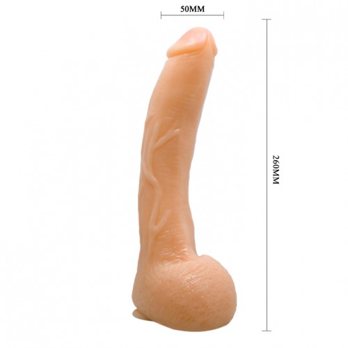 Ствол фаллоса покрыт набухшими венками, что принесет дополнительные ощущения от массажа стенок влагалища.