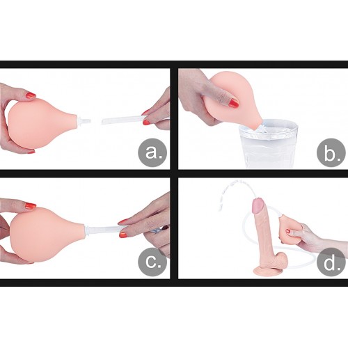 Просто наслаждайтесь ей, как и обычным фаллоимитатором, а в момент Вашей кульминации сожмите грушу, наполнив её предварительно водой либо смазкой на водной основе, и игрушка кончит с Вами одновременно!