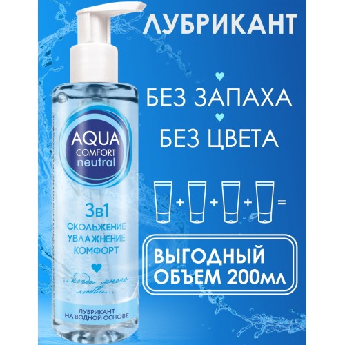 Лубрикант на водной основе Aqua Comfort Neutral дарит нежное длительное скольжение и восхитительное чувство комфорта во время интимной близости!