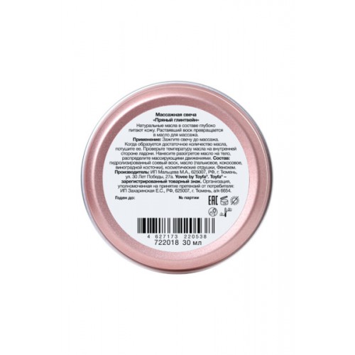 Массажная свеча ''Согревающий массаж'', в составе которой только натуральные масла, глубоко питает и увлажняет кожу.