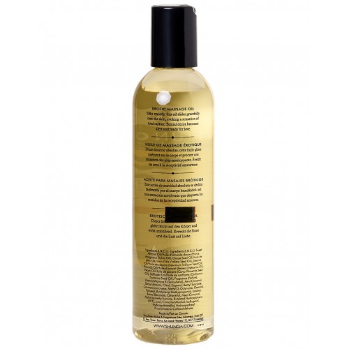 Натуральные компоненты, входящие в состав масла, хорошо подойдут для людей с чувствительной кожей. Сладкий миндаль, витамин Е, иланг-иланг со своими свойствами афродизиака, масла кунжута, авокадо, сафлоры и семян винограда наполнят помещение неповторимым ароматом и пробудят сексуальное желание!