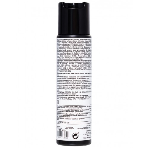 Состав: освежающий напиток с экстрактами (вода, сахар, сироп глюкозы и фруктозы, разрыхлитель: углекислый ангидрид, подкислитель е330, натуральные и искусственные ароматизаторы), глицерин е422, ароматизатор натуральный джин, краситель е131, стайзер е415, консерванты е202 и е211, увлажняющий крем. e1520. содержит хинин.