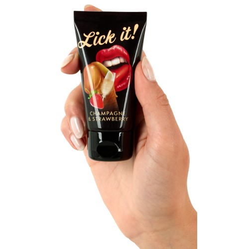 Не возможно устоять перед соблазнительными вкусами и ароматами Lick it! Возбуждающий и пьянящий аромат клубники с шампанским помогают партнерам раскрепоститься и решиться на не забываемый оральный секс. Легко смывается водой.