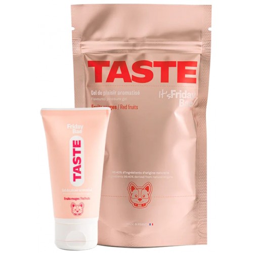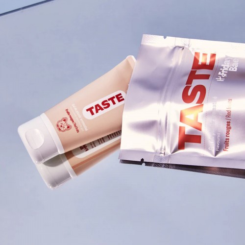 Съедобный лубрикант на водной основе Taste имеет великолепный вкус и аромат сочных красных фруктов, но без сахара.