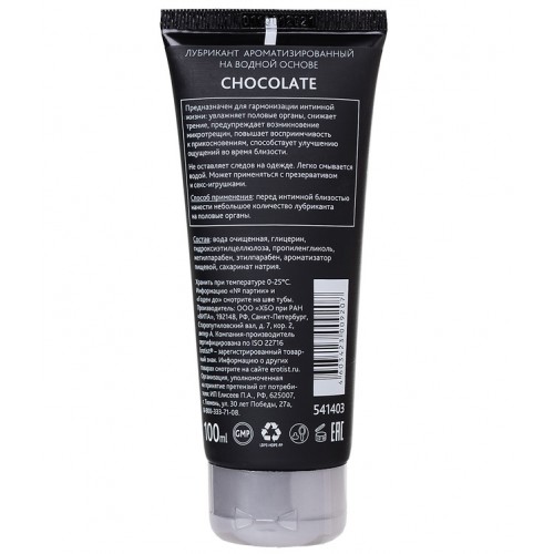 Лубрикант Erotist Chocolate имеет водную основу: он гипоаллергенен, совместим с презервативами и игрушками для взрослых, не оставляет следов и легко смывается водой.