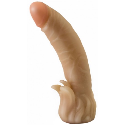 Насадка для страпона гелевая с небольшим отростком для нежной стимуляции клитора, выполнена из материала ПВХ , без запаха.