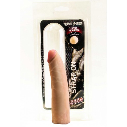 Насадка для страпона телесного цвета. Имеет форму члена и характерный рельеф, который создает дополнительную стимуляцию.