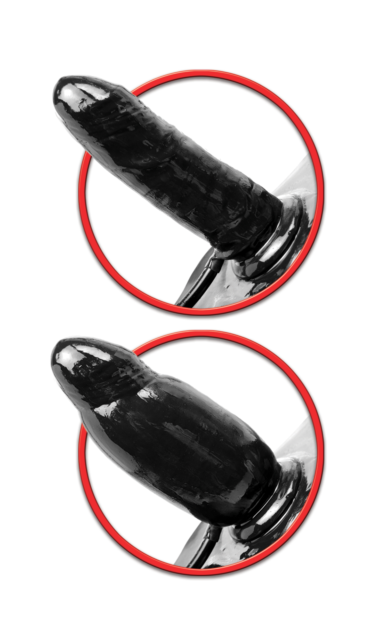 Инновационная модель, черный фаллос реалистичной формы можно увеличить в диаметре при помощи резиновой груши, которая присоединяется к нему гибким шлангом.