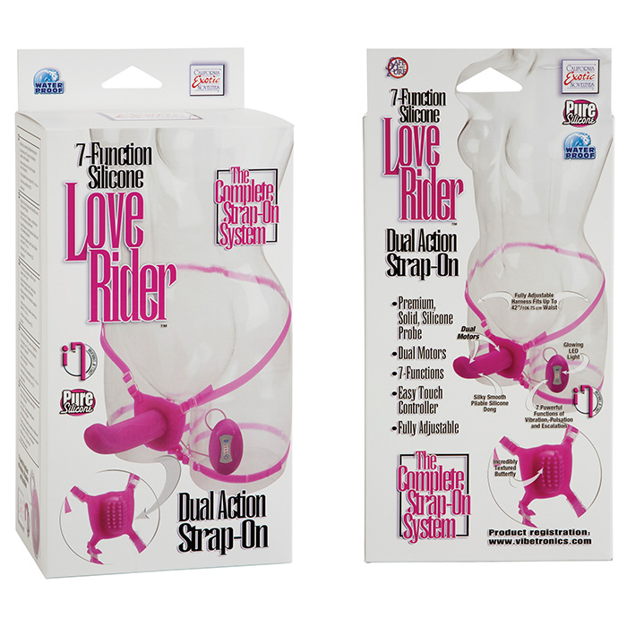 Розовый силиконовый страпон на регулируемых мягких трусиках со встроенным стимулятором клитора. Стимулятор клитора на внутренней стороне трусиков выполнен в виде бабочки с выпуклыми точками. Фаллос имеет два мощных моторчика: на основании (бабочке) - для стимуляции клитора, и на конце - для стимуляции партнера. Игрушка обладает 7-ю различными функциями вибрации и пульсации, которые регулируются выносным пультом управления. Длина фаллоса 13,5 см, диаметр 3,5 см. Игрушка выполнена из силикона высшего качества поэтому полностью гипоаллергенная. Работает от двух мизинчиковых батареек типа ААА (не идут в комплекте).