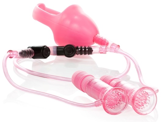 Вакуумный вибростимулятор для сосков от доктора Виктории Здрок. Гелевый вибростимулятор работает от батареек типа "таблетка" (батарейки в комплекте). Вибрация на каждом соске отдельно регулируется. Удобный механизм для откачки воздуха, и два отдельных клапана регулировки давления. Внутри стимуляторов мягкие гелевые шипы для легкого покалывания сосков.
