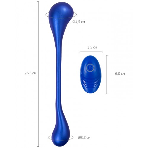 Размер: общая длина 26,5 см, диаметр вибростимуляторов 3,2-4,5 см, длина пульта 6 см, ширина – 3,5 см