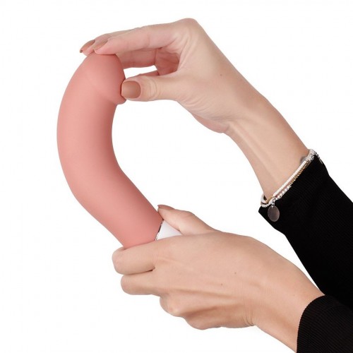Вибростимулятор имеет изогнутое округлое окончание с одной стороны, и толстый, объемный конец - с другой. Вы можете наслаждаться как стимуляцией клитора с помощью объемного основания, так и чувственной стимуляцией точки G с помощью изогнутой головки.