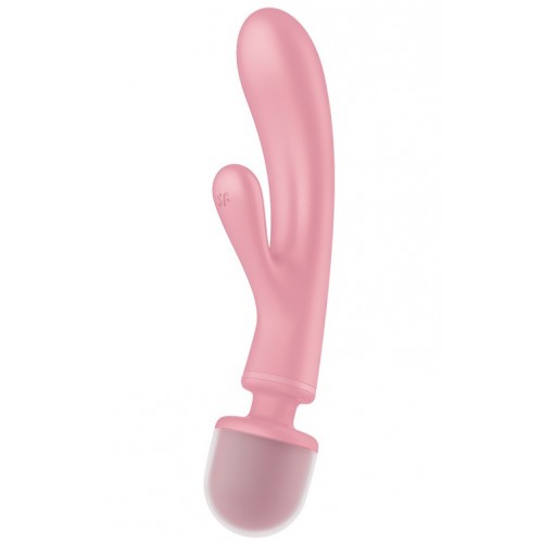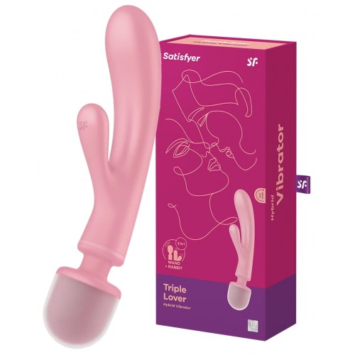 Двусторонний вибратор с клиторальным стимулятором Wand + Rabbit Satisfyer Triple Lover Pink