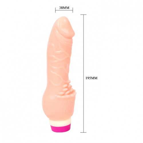 Вибромассажер представляет собой реалистичную копию мужского члена с выделенными венками и головкой.