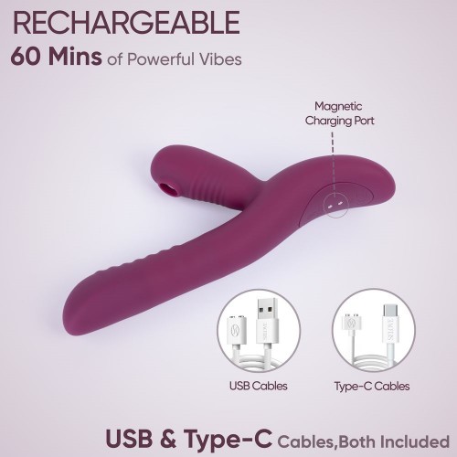 Игрушка предлагает 10 режимов пульсации и вибрации для точки G, а также 10 режимов воздушного всасывания для клитора, позволяя подобрать ритм и интенсивность под настроение!