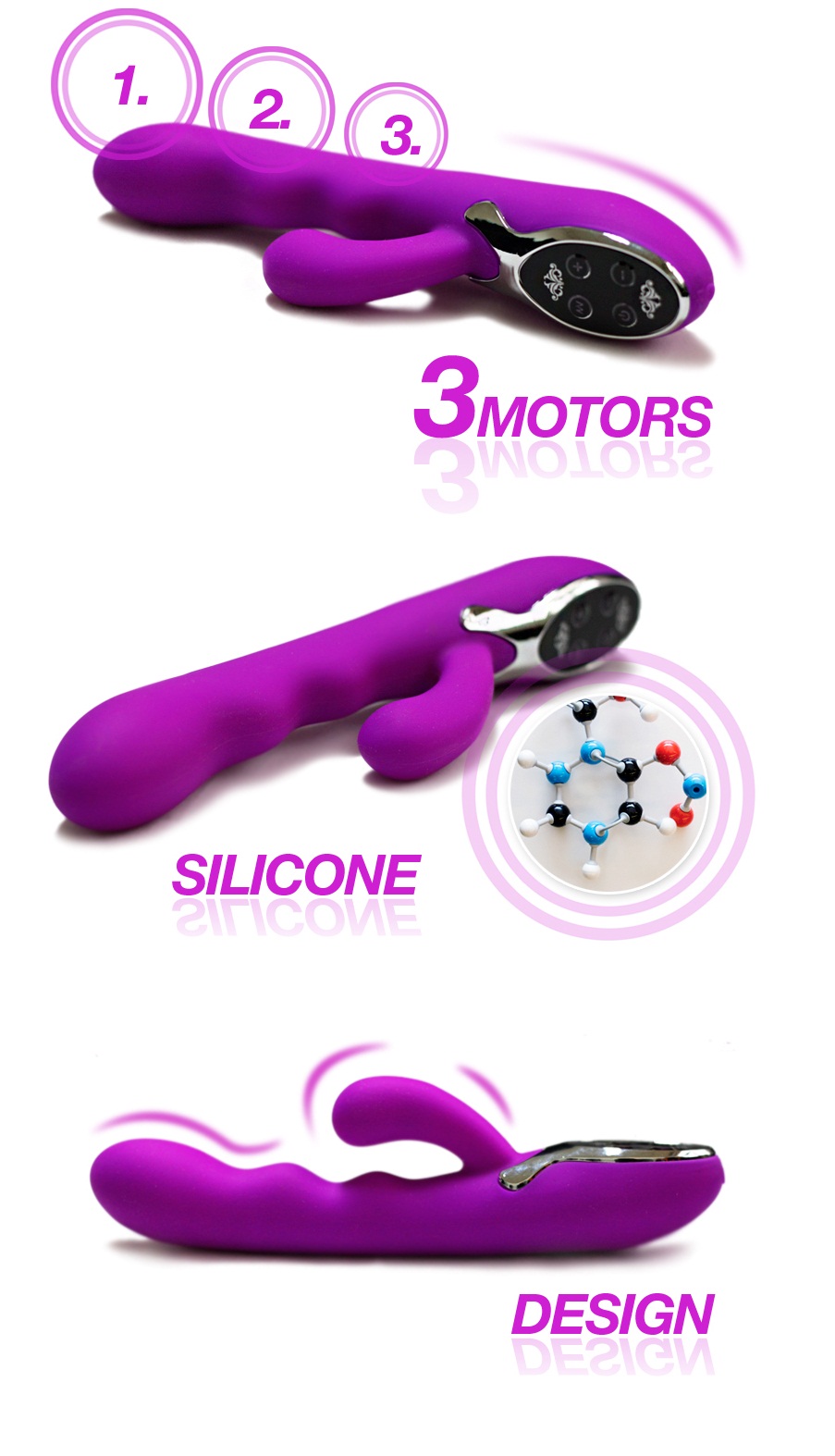 Интенсивность вибрации регулируется сенсорным блоком, проводя по которому можно легко увеличить или снизить скорость вибрации.