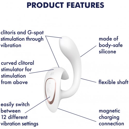 Теги: вибратор, точка G, satisfyer, магнитная зарядка, перезаряжаемый вибратор, стимуляция клитора, G for Goddess, белый