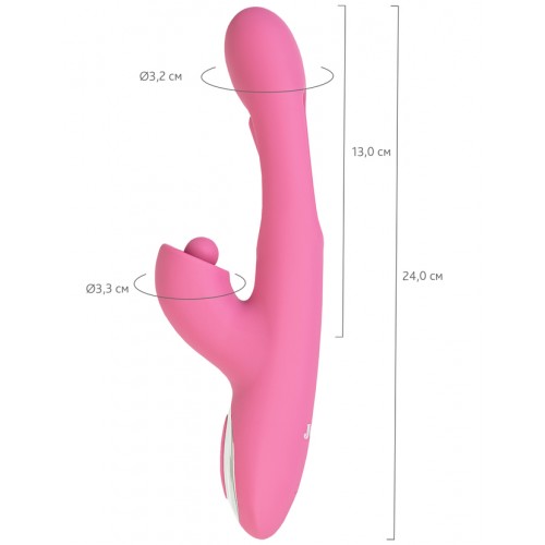 Размеры: общая длина 24 см, рабочая длина вагинального отростка 13 см, максимальный диаметр вагинального отростка 3,2 см, максимальный диаметр клиторального отростка 3,3 см