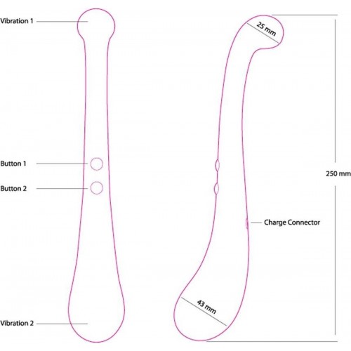 Вибростимулятор имеет изогнутое округлое окончание с одной стороны, и толстый, объемный конец - с другой. Вы можете наслаждаться как стимуляцией клитора с помощью объемного основания, так и чувственной стимуляцией точки G с помощью изогнутой головки.