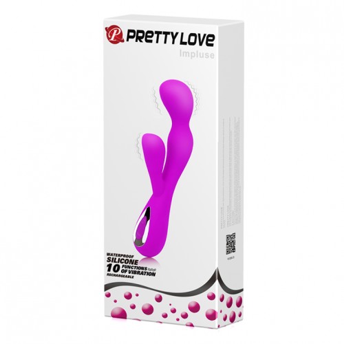 Перезаряжаемый вибромассажер с клиторальной стимуляцией. Имеет два независимых мотора, расположенных в средней части и в клиторальном отростке, с 10 функциями вибрации.