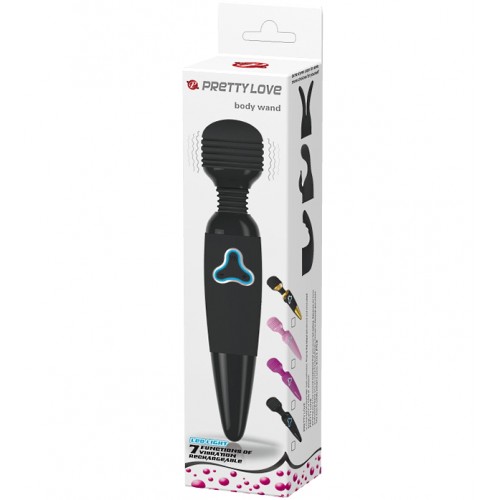 Перезаряжаемый вибромассажер Pretty Love Body Wand с 7-ю функциями интенсивной вибрации не имеет запаха, изготовлен из гипоаллергенного материала и имеет мощный моторчик, работающий практически бесшумно.