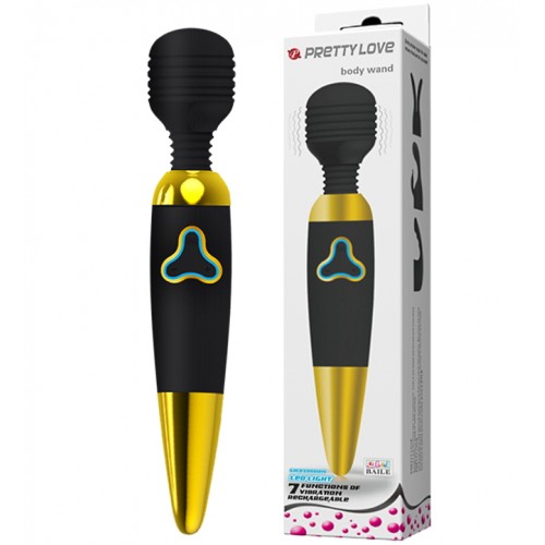 Вибромассажер Pretty Love Body Wand с 7 функциями вибрации черно-золотой